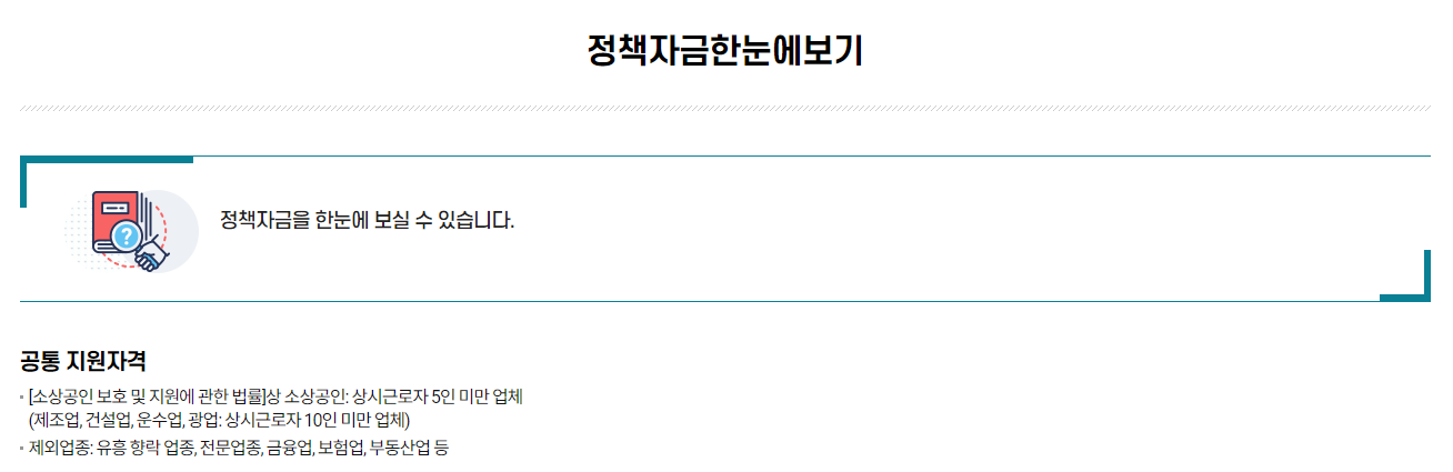 현재 기준으로 소상공인 지원금 신청 홈페이지를 통해 신청 가능한 주요 항목은 아래와 같습니다.
