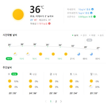 1. 네이버 날씨는 대한민국 기상청 데이터를 기반으로 한 날씨 앱으로, 국내 사용자에게 매우 적합합니다. 단순하고 직관적인 구성으로 누구나 쉽게 사용할 수 있지만, 해외여행이나 외국 지역 날씨 정보를 확인하는 데는 제한이 있습니다.